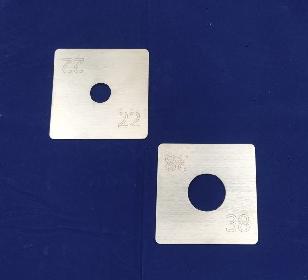 Edelstahl Einlagen mit Gravur der Lochdurchmesser